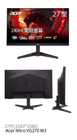 【主機搭購】Acer Nitro KG241Y P3.〈1H1P/VA/180Hz/HDR10〉〈獨家款〉$2588↘