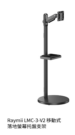 Raymii LMC-3-V2 移動式落地螢幕托盤支架 黑 (單螢幕 /機械彈簧) 承載10KG / 17-43吋