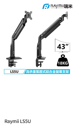 Raymii LS5U (單螢幕 / 穿夾兩用 / 高負重氣壓 / USB3.0*2 / 17-43吋 / 承載18KG / 黑色)