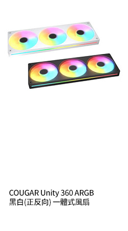 COUGAR Unity 360 ARGB 黑(反向) 一體式風扇/側邊燈效/1600RPM/PWM/三年保