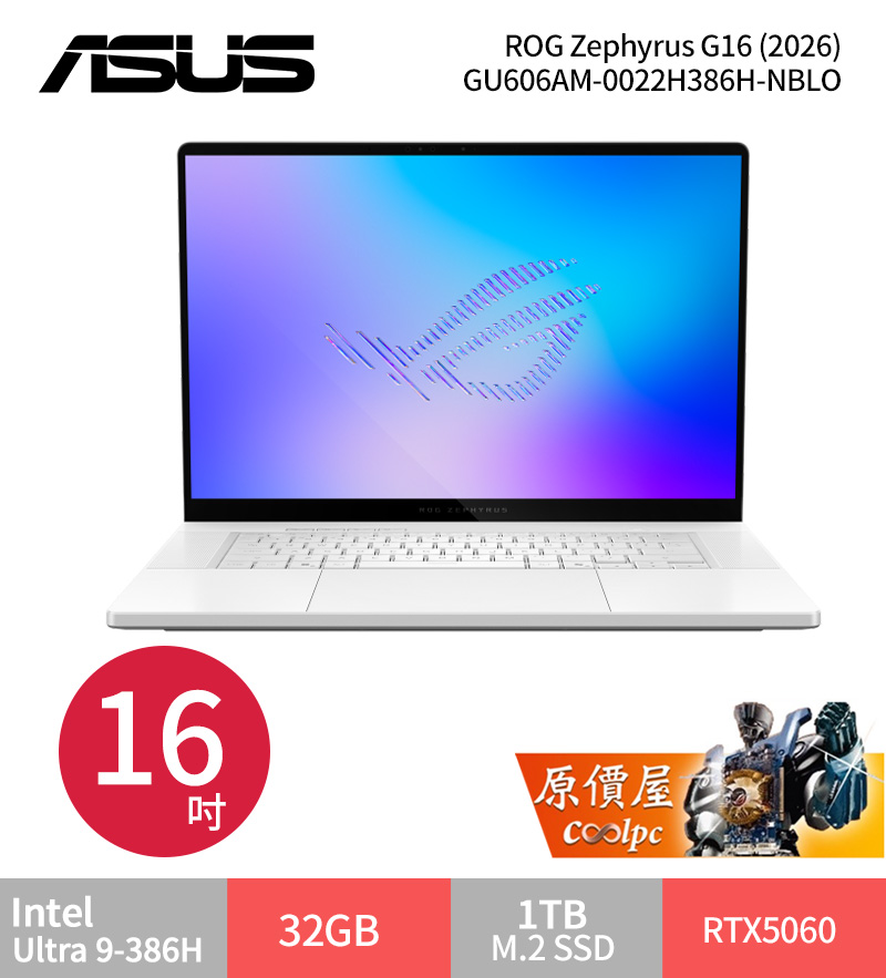 【預】華碩 ROG Ultra 9-386H/RTX5060/32G/1T/16吋 鉑月銀 GU606AM-0022H386H-NBLO $95999>蝦皮商城>官網