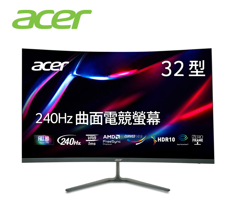【預】Acer Nitro ED320Q W0〈2H1P/VA曲面/1500R/240Hz/含喇叭/HDR10〉$5999>蝦皮商城>官網