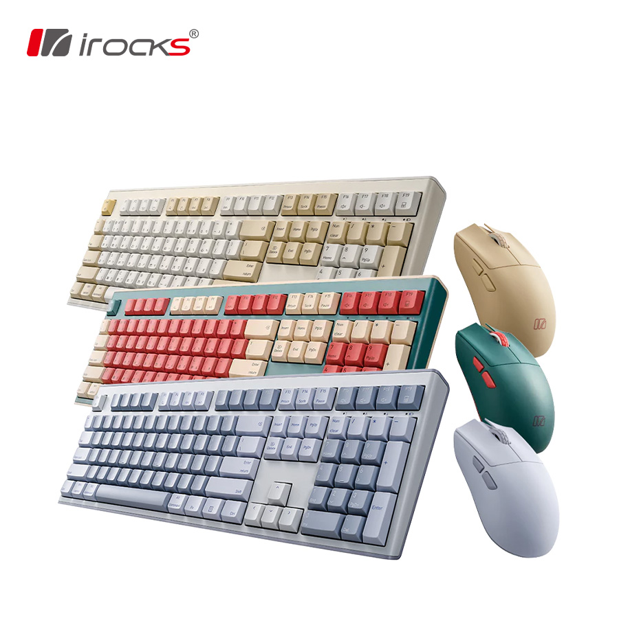 irocks K105RP 三模剪刀腳靜音鍵鼠組(亞麻晨光)/有線/無線/藍牙/中文/支援MAC系統$1890>蝦皮商城>官網