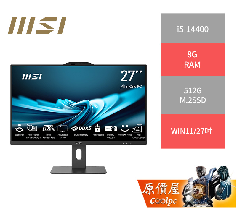 MSI PRO AP272P 14M【632TW】27吋 / i5-14400 / 8G / 512G / WIN11 / 黑 $27900>蝦皮商城>官網