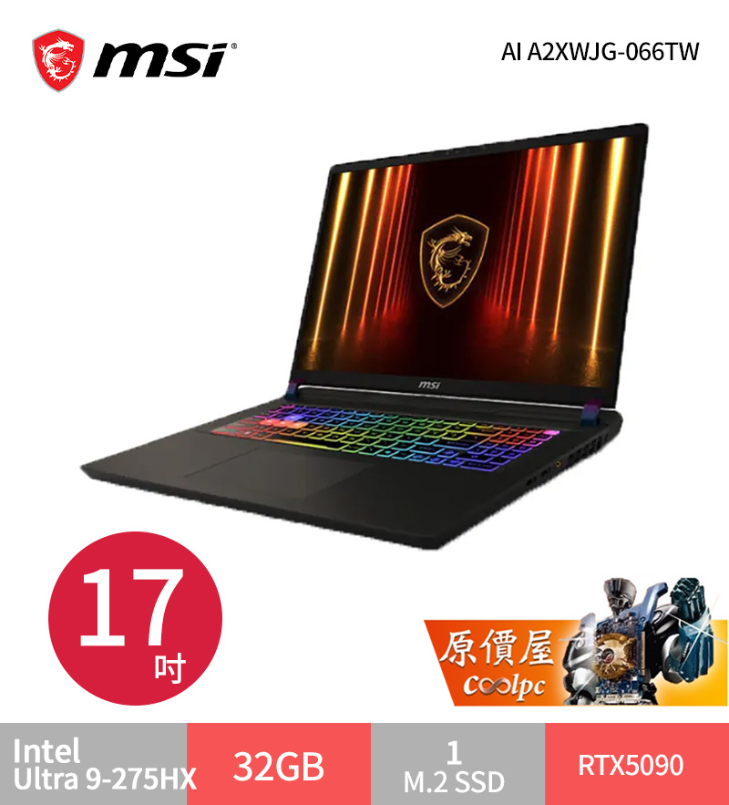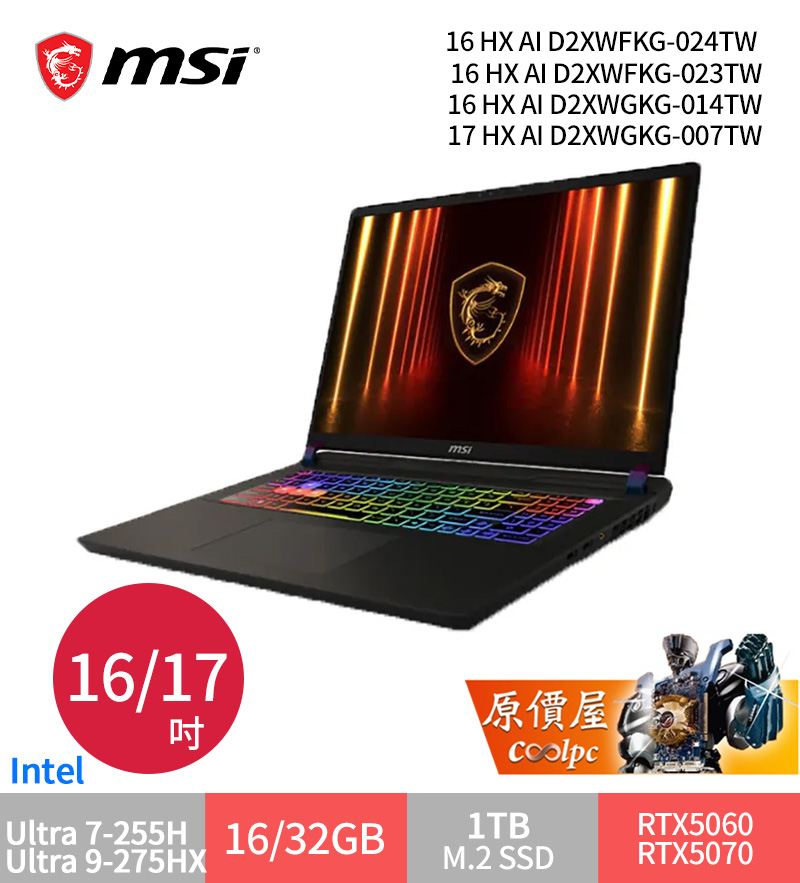 微星 Crosshair Ultra 7-255HX/RTX5070/32G/1T/17吋 黑 17 HX AI D2XWGKG-007TW $59900>蝦皮商城>官網