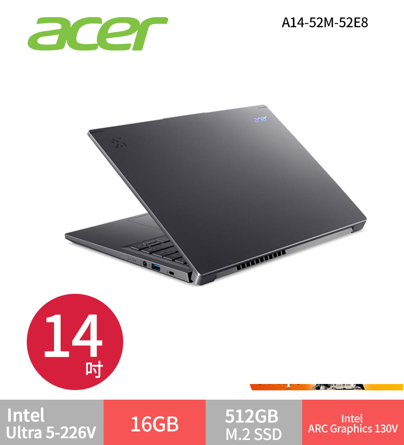 Acer宏碁 Aspire 14 A14-52M-52E8 Ultra5/14吋 AI文書筆電 NB筆記型電腦 sasa2025-04-22T03:13:43+08:00 Acer Aspire 14 /Ultra 5-226V/16G/512G/14吋/灰 A14-52M-52E8 $28900>蝦皮商城>官網