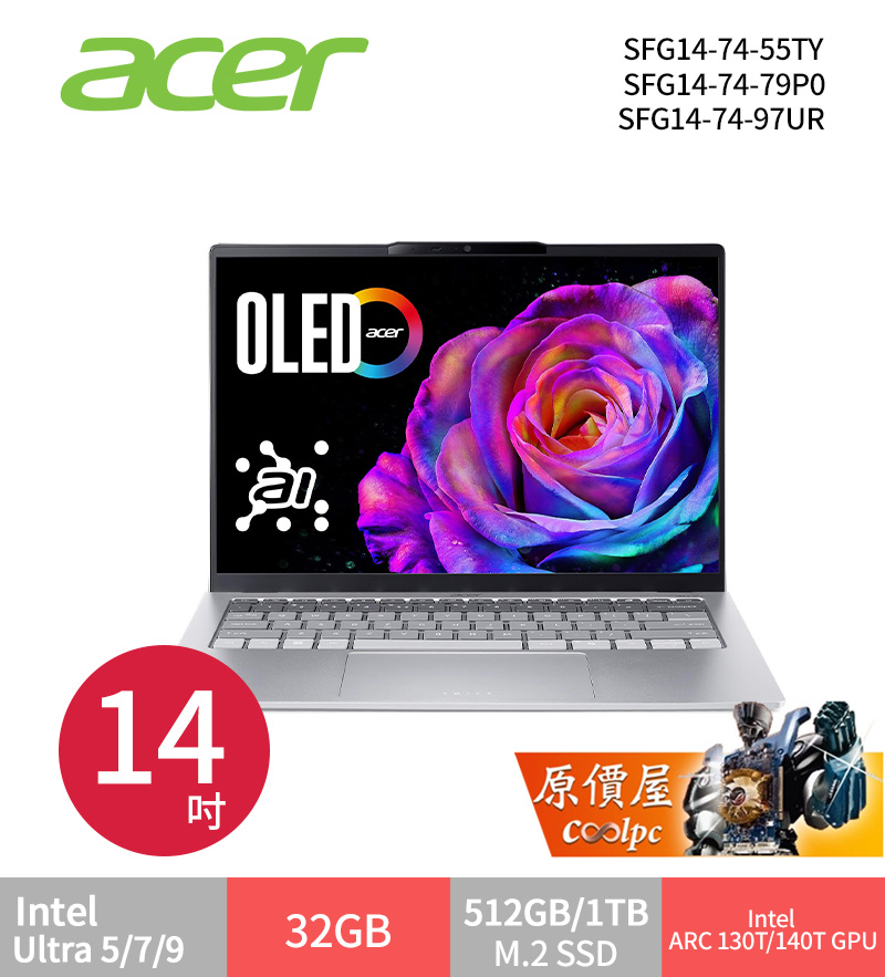 Acer宏碁 Swift Go 〈銀〉Ultra5/7/9/14吋 AI 輕薄筆電 NB筆記型電腦 sasa2025-04-22T03:43:31+08:00 Acer Swift Go /Ultra 5-225H/32G/512G/14吋/銀 SFG14-74-55TY $39900>蝦皮商城>官網 Acer Swift Go /Ultra 7-255H/32G/1T/14吋/銀 SFG14-74-79P0$43900>蝦皮商城>官網 Acer Swift Go /Ultra 9-285H/32G/1T/14吋/銀 SFG14-74-97UR $45900>蝦皮商城>官網