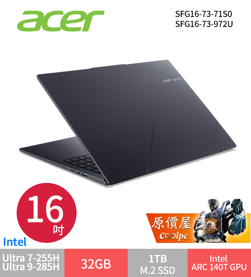 Acer宏碁 Swift Go 16 AI Ultra5/16吋 輕薄筆電 NB筆記型電腦 sasa2025-04-20T06:07:10+08:00 Acer Swift Go /Ultra 5-225H/16G/512G/16吋/灰 SFG16-73-53U8 $39900>蝦皮商城>官網 Acer Swift Go /Ultra 5-225H/32G/512G/16吋/灰 SFG16-73-529D $41900>蝦皮商城>官網