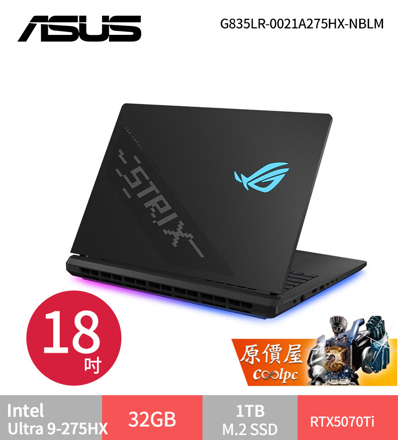 ASUS ROG Strix G18 (2025) G815 U9/5070Ti/18吋電競筆電 NB筆記型電腦 sasa2025-04-23T05:10:45+08:00 華碩 ROG Ultra 9-275HX/RTX5070Ti/32G/1T/18吋 電光綠 G815LR-0021G275HX-NBL $79999>蝦皮商城>官網