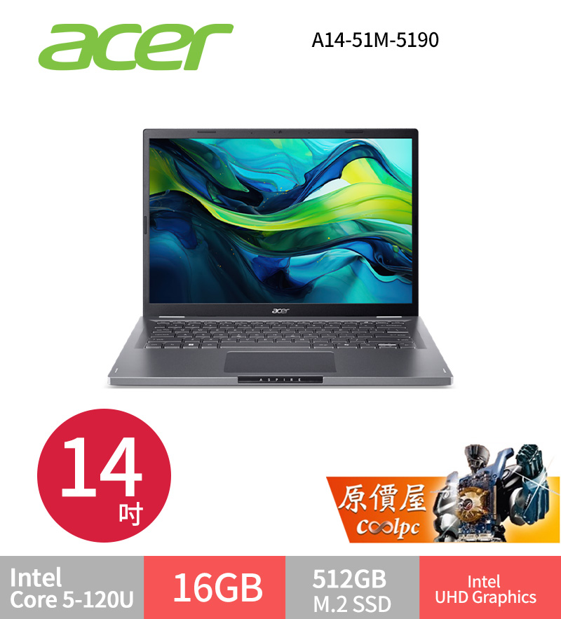 Acer宏碁 Aspire A14-51M-5190〈灰〉Core5/14吋 文書筆電