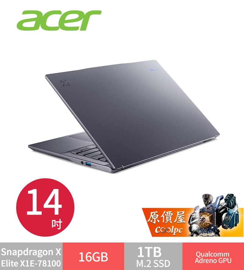 【新】Acer Swift 14 Qualcomm X1E-78100/16G/1T/14吋 灰 SF14-11T-X5F7〈觸控〉 $45900>蝦皮商城