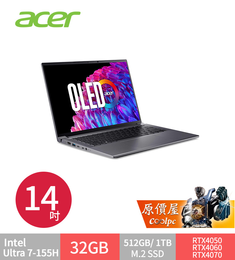 Acer宏碁 Swift X 14 【14吋】U7/RTX40獨顯 創作者筆電〈灰〉 NB筆記型電腦 sasa2024-04-22T21:42:58+08:00 Acer Swift X Ultra 7-155H/RTX4050/32G/512G/14吋 灰 SFX14-72G-736M $47900>蝦皮商城>官網 Acer Swift X Ultra 7-155H/RTX4060/32G/512G/14吋 灰 SFX14-72G-73Y6 $50900>蝦皮商城>官網 Acer Swift X Ultra 7-155H/RTX4070/32G/1T/14吋 灰 SFX14-72G-79Z4 $57900>蝦皮商城>官網