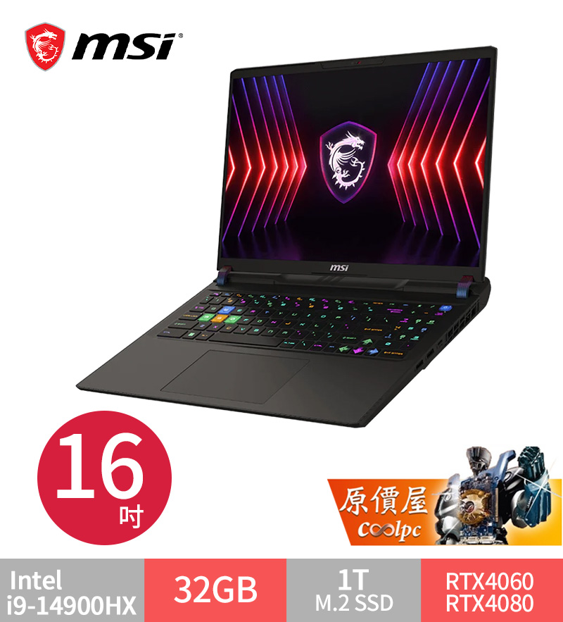 微星 Vector i9-14900HX/RTX4080/32G/1T/16吋 黑 HX A14VHG-293TW $79900>蝦皮商城>官網