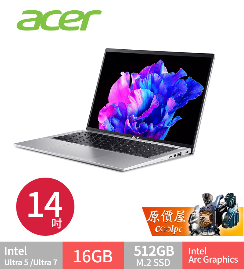 Acer Swift Go Ultra 7-155H/16G/512G/14吋 銀 SFG14-72T-70KR *Ultra 7 觸控機種 $38900>蝦皮商城