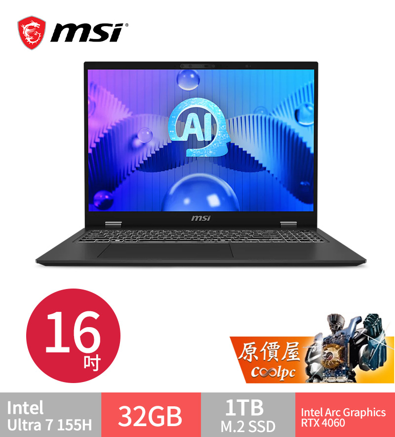 MSI微星 Prestige 16 AI Evo B1MG【007TW】Ultra7/16吋輕薄筆電