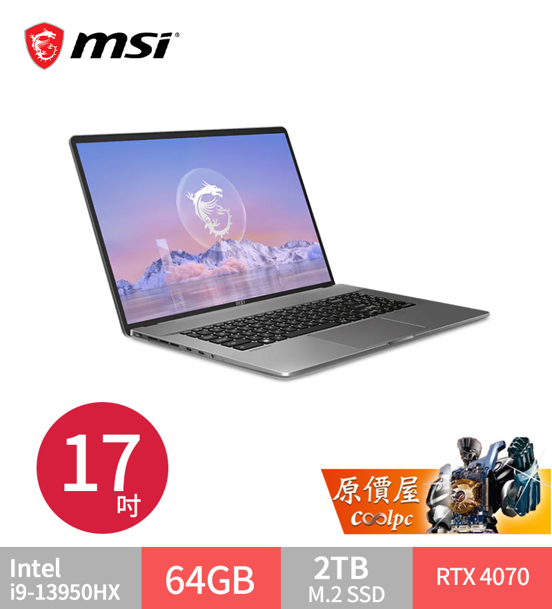 微星 Creator Z17HXStudio A13VGT【083TW】i9/4070/17吋創作者筆電