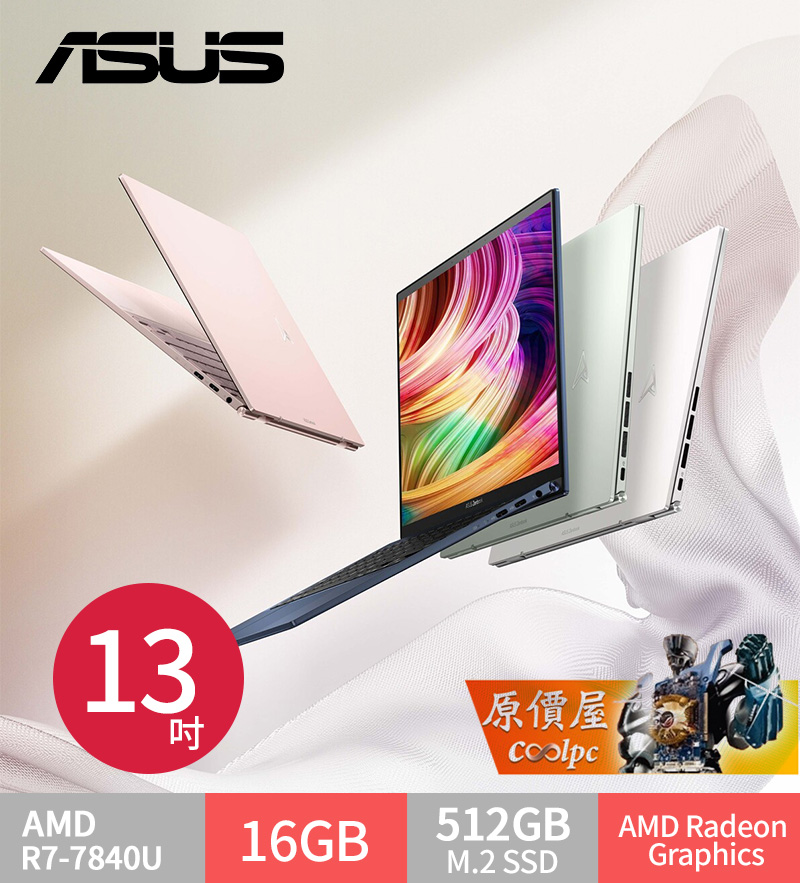 華碩 Zenbook R7-7840U/16G/512G/13吋 裸粉色 UM5302LA-0088D7840U 觸控/ $36900>蝦皮商城>官網