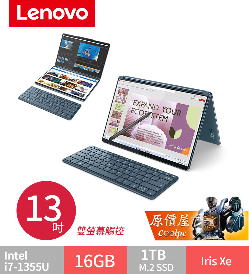 Lenovo聯想 Yoga Book 9 82YQ000STW〈綠〉i7/13.3吋 雙螢幕觸控筆電