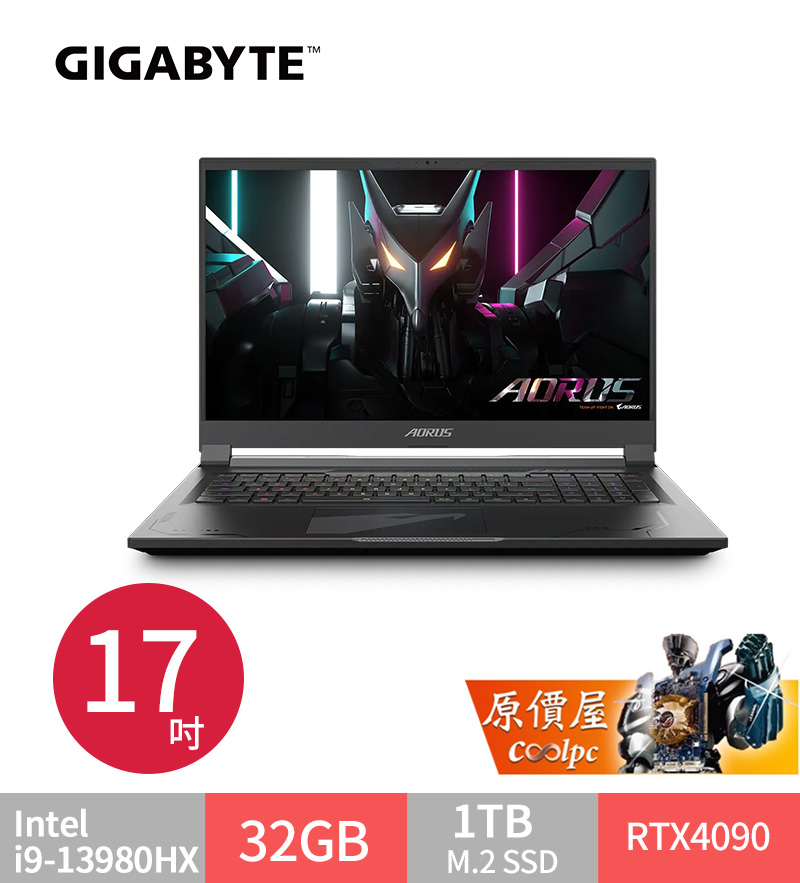 技嘉 AORUS 17X i7-13980HX/RTX4090/32G/2T/17吋 黑 AZF-D5TW665SP $99990>蝦皮商城>官網