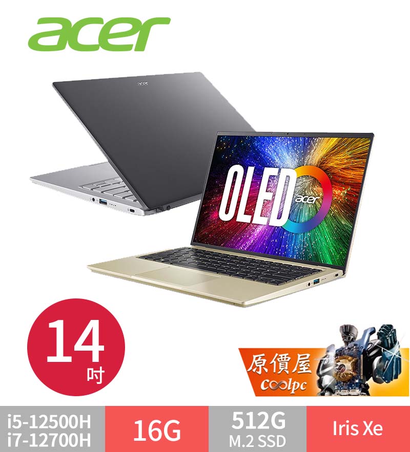 Acer SF314-71-79NM〈金〉i7-12700H/16G/512G/Iris Xe/OLED【Intel EVO認證】 $38900【蝦皮商城】