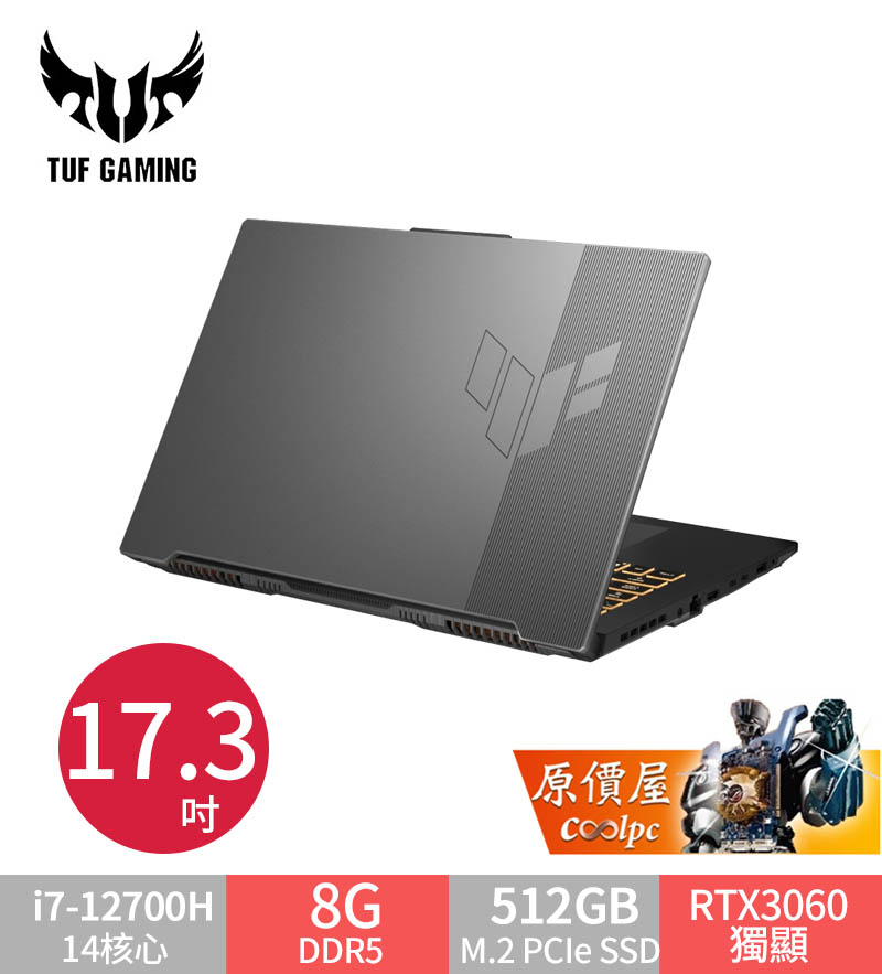 華碩 TUF FX707ZM-0021B12700H(幻影灰)(i7-12700H/16G/512G/RTX3060) 訂 2/15後 $45900