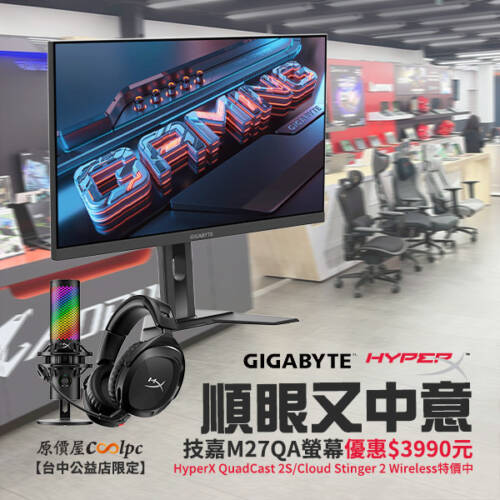 【台中公益店限定】最順眼的畫面,最「中益」的價碼!技嘉M27QA 2K 180Hz螢幕優惠只要$3990元!