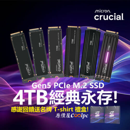 Crucial 經典永存!美光 4TB Gen5 PCIe M.2 SSD 感謝回饋限量送名牌衣服禮盒!