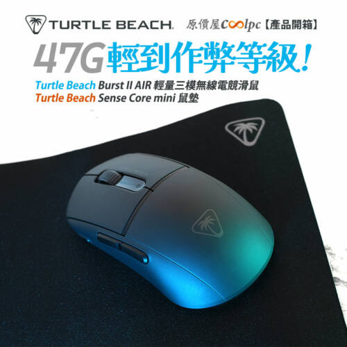 【開箱】僅47G,輕到作弊等級!Turtle Beach Burst II Air 輕量三模無線電競滑鼠+Sense Core mini 鼠墊。