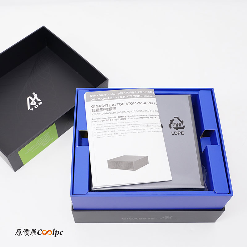 這台其實就是黃仁勳親自交付給馬斯克全球最小的 NVIDIA DGX Spark AI 超級電腦!只是技嘉的外觀不是 NVIDIA 公版樣式,名稱也命名為 AI TOP ATOM,一樣搭載 NVIDIA GB10 Grace Blackwell 超級晶片和第五代 Tensor Core,提供 1 PetaFLOP FP4 AI 運算效能​,具備 128GB 統一系統記憶體,最高支援 200B 億參數模型,最特別的是技嘉 AI TOP ATOM 超級電腦使用自家的 Gen5 4TB 高速SSD,而且它的體積僅只有 H:50.5 x W:150 x D:150 mm 大小,1.2 公斤的重量,這麼小巧又帶來強大的效能與功能,讓開發者、研究人員、資料科學家和學生輕鬆駕馭當前最嚴苛的 AI 工作負載。一台效率不夠你還可以透過 ConnectX-7 SmartNIC 高頻寬、低延遲傳輸介面,讓兩台 AI TOP ATOM 系統可直接互連,成倍擴展運算能力,輕鬆處理 405B 億參數模型。內建 NVIDIA DGX OS(Ubuntu Linux) 作業系統,內含 NVIDIA AI 軟體堆疊,像是工具、框架、函式庫和預先訓練的模型,來處理生成式 AI 工作負載。除此之外還能安裝技嘉自家 AI TOP Utility (點我查看)軟體套件,即時生成與推論一手包辦!這台AI 超級電腦簡單來說就是讓你拿來開發、訓練、微調或是驗證推論模型,還能使用在資料科學和邊緣應用上,這些都能順利部署至資料中心或雲端上來使用。廢話不多說,讓我們一起來看看它的開箱吧。