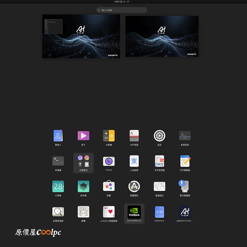 內建客製化 NVIDIA DGX (Ubuntu Linux)圖形介面系統,可以讓使用者透過滑鼠和視窗進行操作,而非純文字命令列,操作方式與 Windows 類似,這對剛初學 AI 領域的用戶更容易上手。