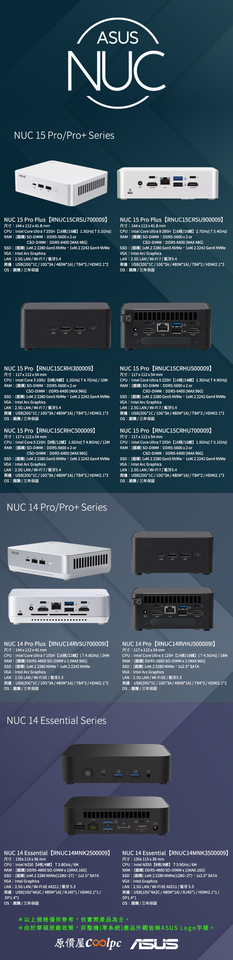 ASUS NUC 14 Essential【RNUC14MNK2500009】N250 (RAM.DISK.OS選購), $8199