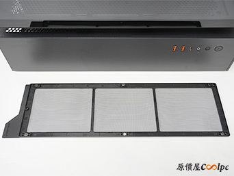 頂部有沖孔鐵網透氣並阻隔灰塵,裏頭的風扇支架能夠擴充3顆120mm或140mm風扇。
