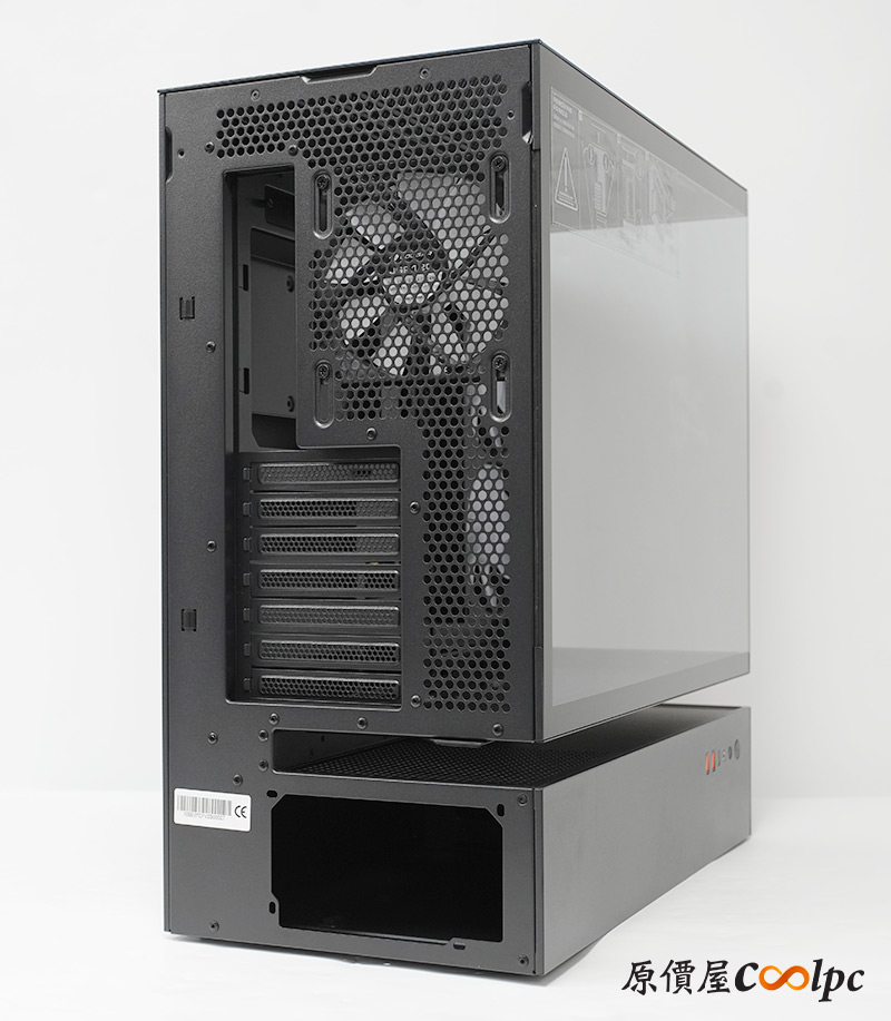 後方內建1顆120mm ARGB PWM風扇,提供7個PCIe擴充槽,下置式電源供應器設計。