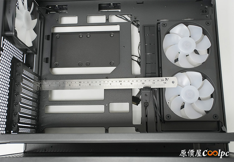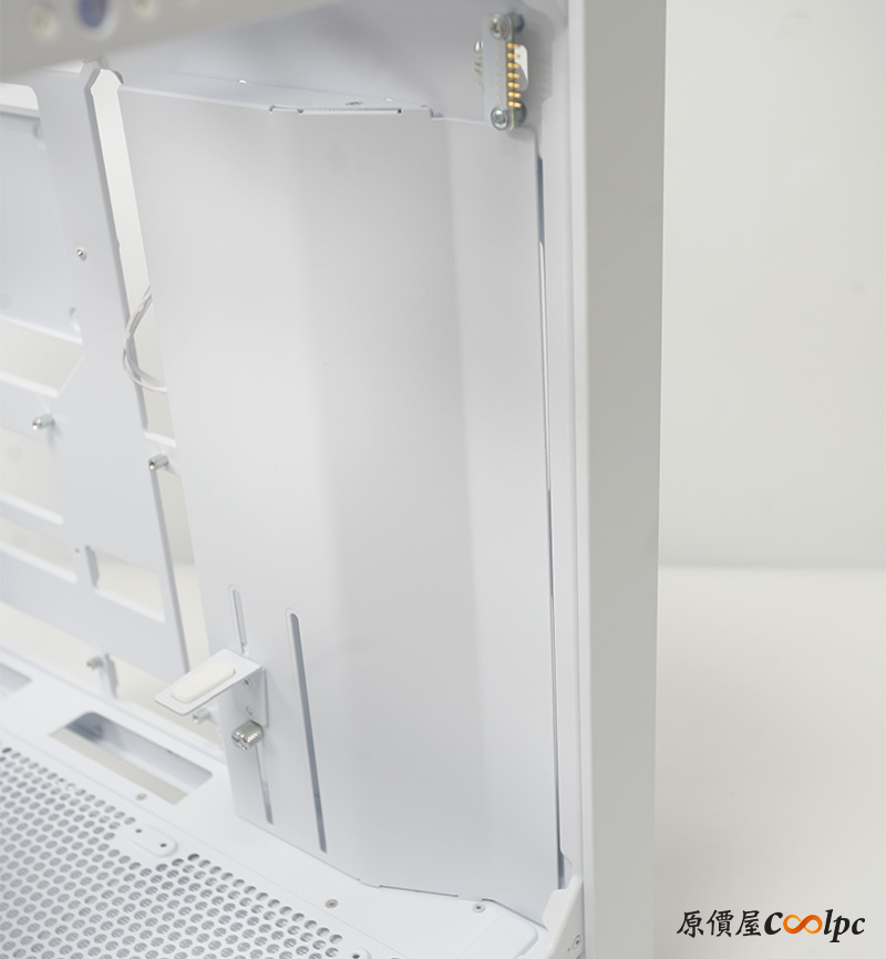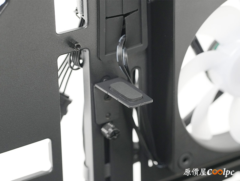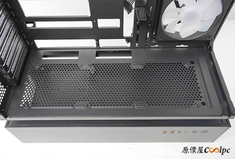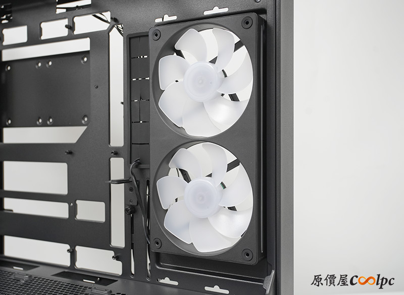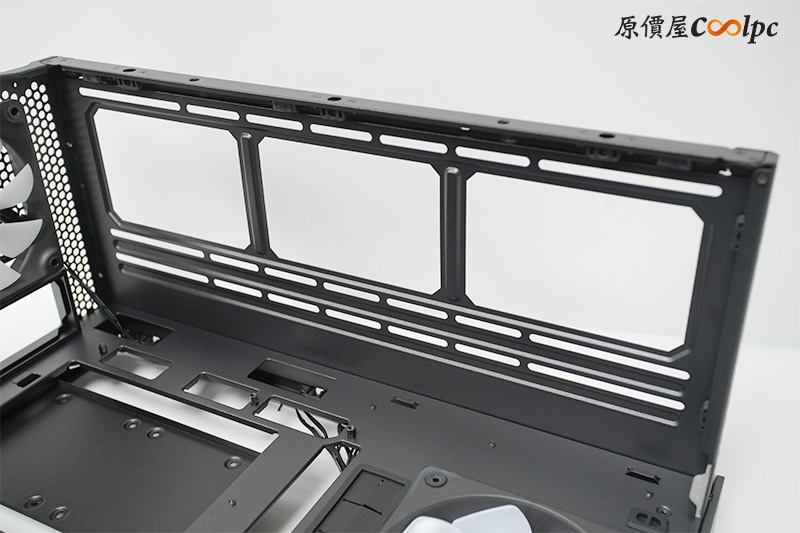 理線板可以移動位置,拆掉的話能裝兩顆120mm風扇,右側版上也有針對這裡做透氣孔喔。