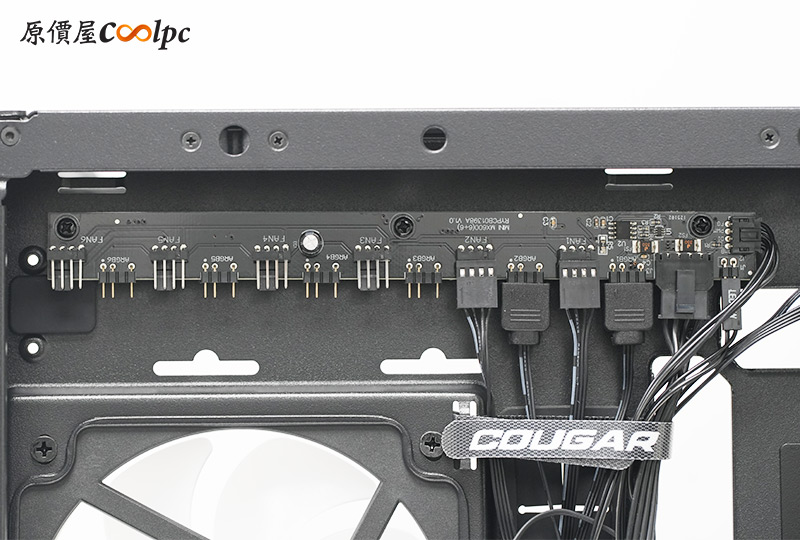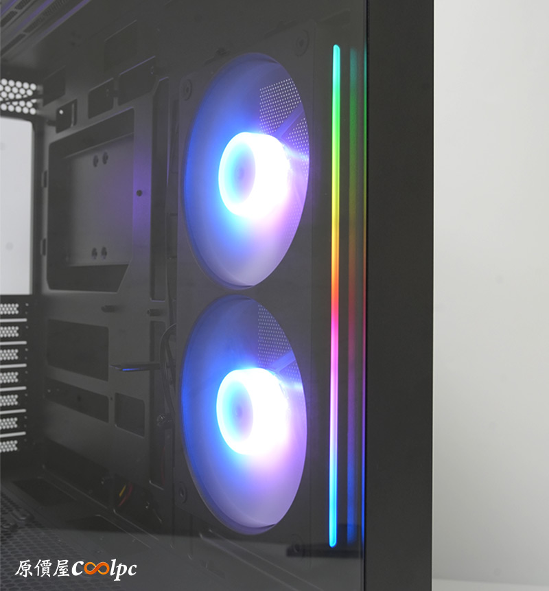 側邊內建一組UNITY 240 ARGB PWM風扇,這是COUGAR自家的一體式風扇,除了風扇的部分有ARGB燈光效果外,側邊框架還有ARGB流線,多方向增加觀賞性。