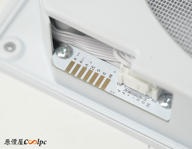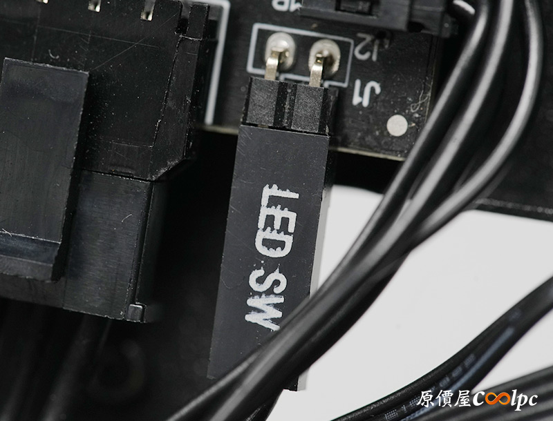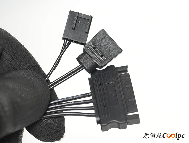 內建一個RGB HUB燈光控制器/集線器,在扣掉內建風扇用掉的數量後,還有4組小4pin、3Pin 5V RGB可以使用。另外看到控制器上接了一條LED SW,燈光可以直接透過I/O上的按鈕控制,而控制器最後會拉出一條小4Pin風扇主線、3Pin 5V RGB主線,接上主機板就能藉由軟體控制轉速與燈光效果,供電的SATA電源要記得插喔。