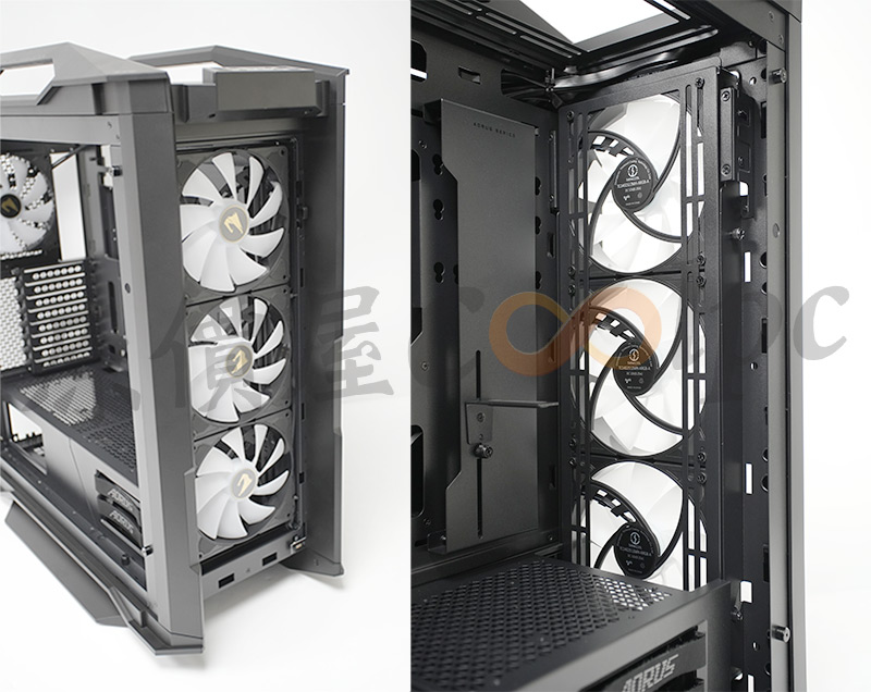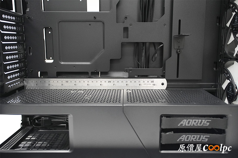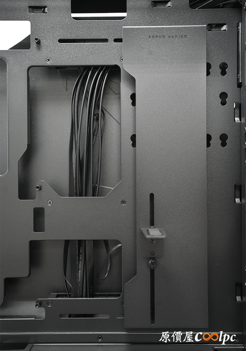 內部空間非常寬敞,最大可支援E-ATX主機板,也能安裝技嘉STEALTH背插式主板,從開孔的位置分布就能看出一二,不過尺寸限定ATX喔!