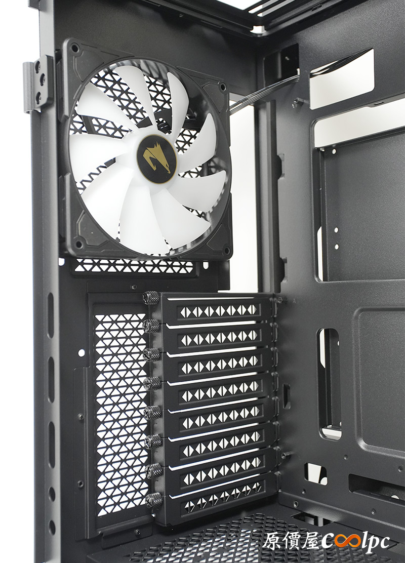 後方內建一顆140mm ARGB風扇,8個PCIe擴充槽,下置式電源供應器設計。