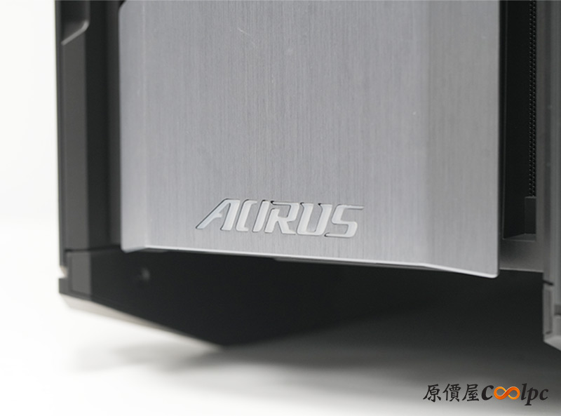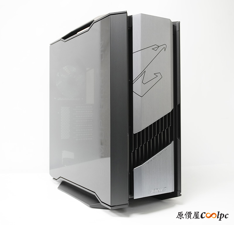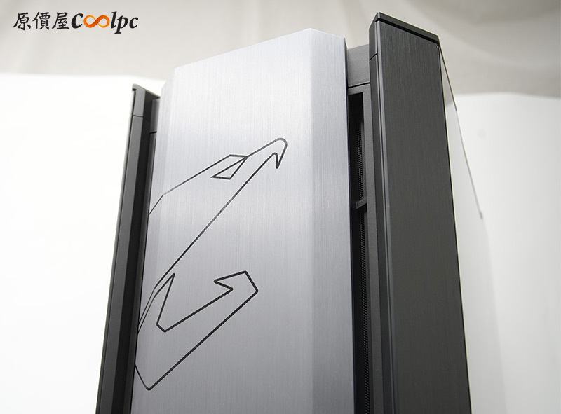 裝上鎧甲後感覺都不一樣啦!本來黑色的機殼搭配上銀色鋁材質飾板,表面髮絲紋設計,上面還有AORUS老鷹圖樣,技嘉「TEAM UP. FIGHT ON.」口號,當然也少不了AORUS字樣,而且還是有ARGB特效的喔。機殼體積611 x 290 x565mm(H x W x D),由鋁金屬、鋼、塑膠、玻璃等組成,左右兩側鋼化玻璃面板,熏黑設計像是蒙上一層面紗,讓裏頭又多了一絲神秘感。
