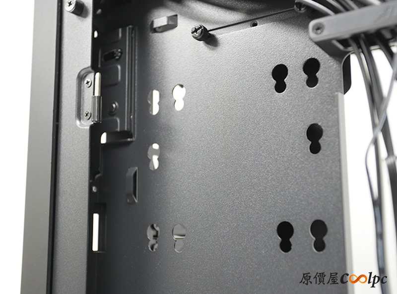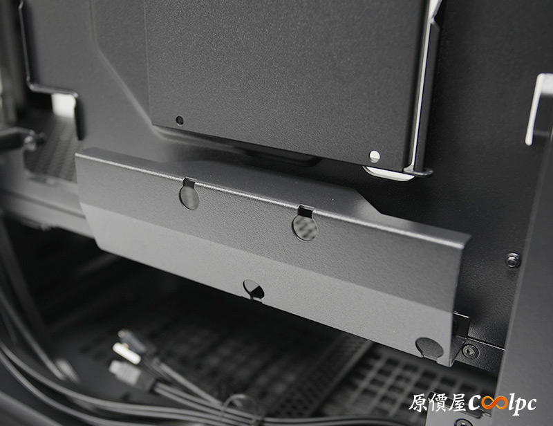 機殼內有一個理線板,位置可以透過後方螺絲移動固定,遮擋線材讓內部更簡潔美觀。