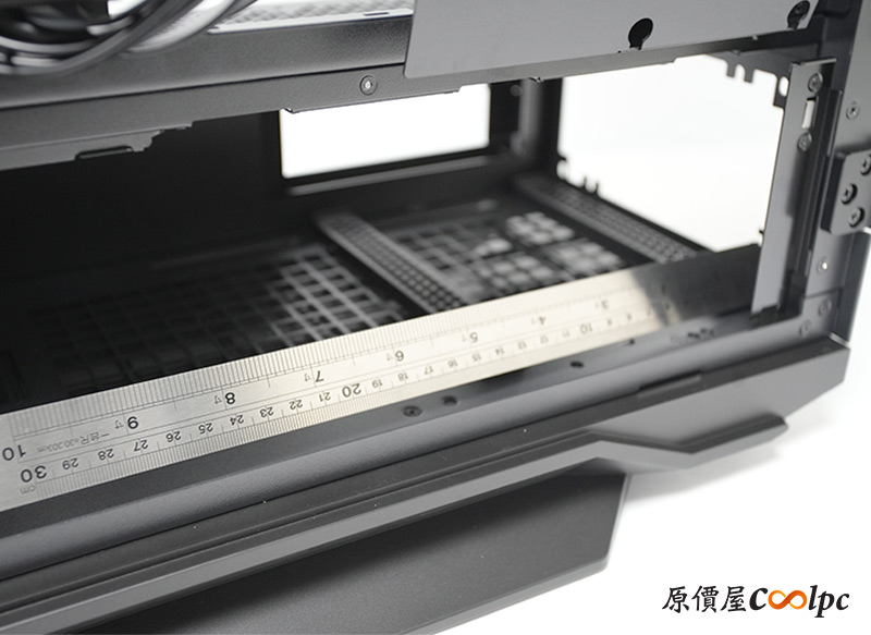 底部電源艙中空間充裕,支援長度220mm的電源供應器,前方也還有許多位置可收納線材。