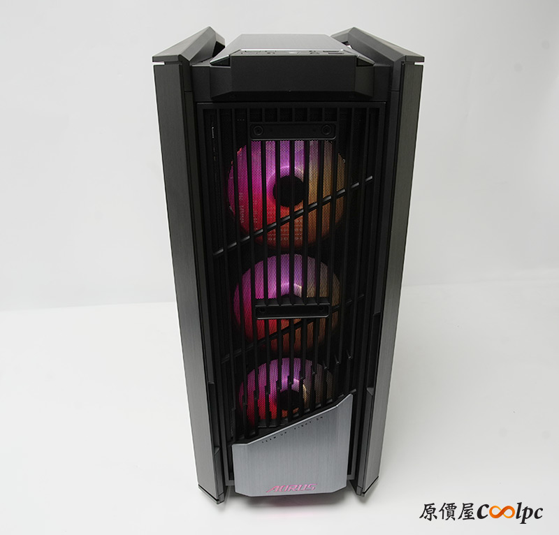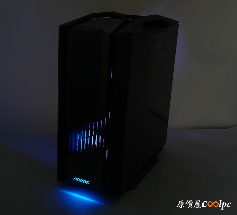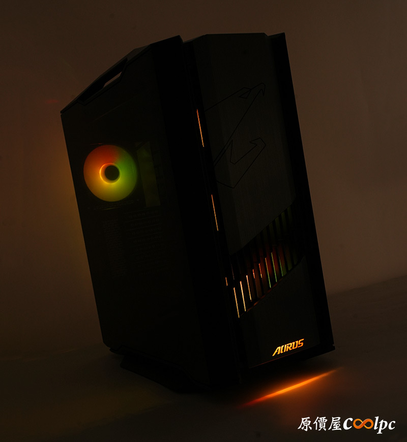 最後過電點燈!主要視覺焦點還是留在鋁製神鷹鎧甲上面,ARGB風扇相對地只是點綴,不過好在鎧甲是磁吸可快拆,隨時想要欣賞燈光效果只要動動手就可以。對了,前面板下方的AORUS字樣是有光的,而且可以跟著其他ARGB裝置同步,雖然我私心覺得上方的大鵰頭如果也能亮,應該會帥到炸開來,不過現階段已經是很有質感又吸睛了,維持現狀也沒有不好喔。