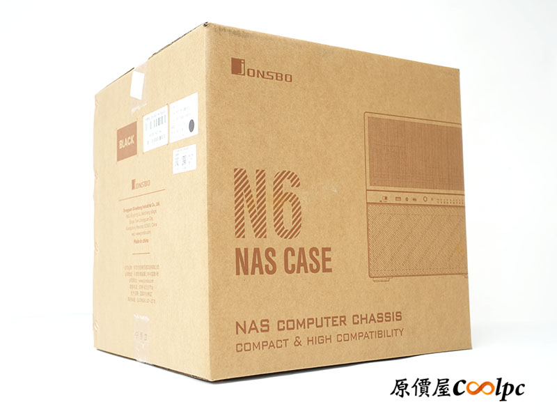 喬思伯(Jonsbo)N6 不同於電競產品常見的華麗彩盒,作為 NAS 專用機殼,其採用環保牛皮紙箱,減去繁複印刷的設計,更契合 NAS 玩家追求穩重、可靠的專業感。箱體標註「N6 NAS CASE」與「COMPACT & HIGH COMPATIBILITY」標語,一旁是半機身示意圖,令人迫不急待想拆箱。
