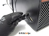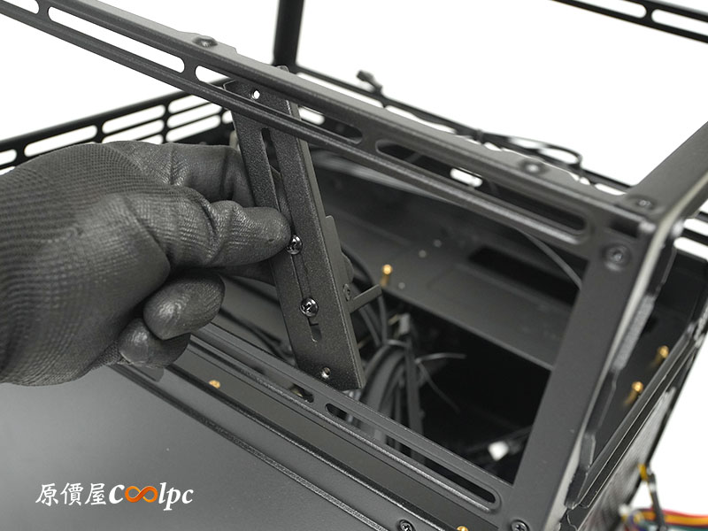 除了前面講到的下置單 SFX 電源架構,還可以改成前置 SFX 單電源架構,先替換後風扇轉接架,並將電源延長線鎖上支架。