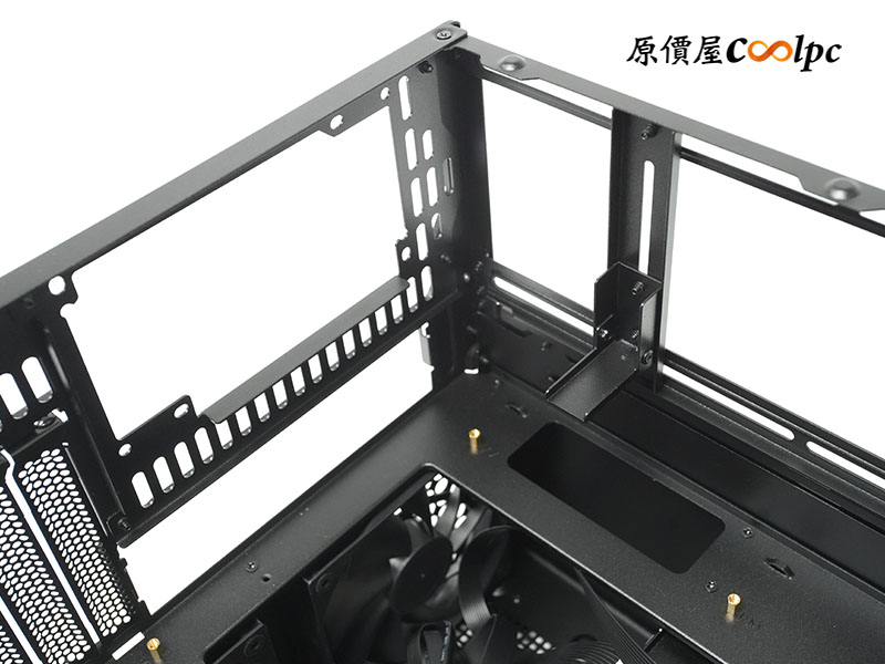 機殼也支援前置電源安裝方式。透過前置電源支架,可將 SFX 電源供應器垂直固定於上層前端區域。讓 CPU 空冷高度可以有更高的安裝上限。這種多樣化的配置選項,讓喬思伯 N6 能夠完美適應不同的散熱規劃與電源選擇。