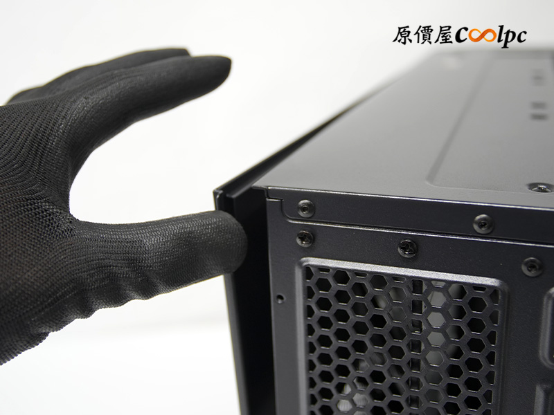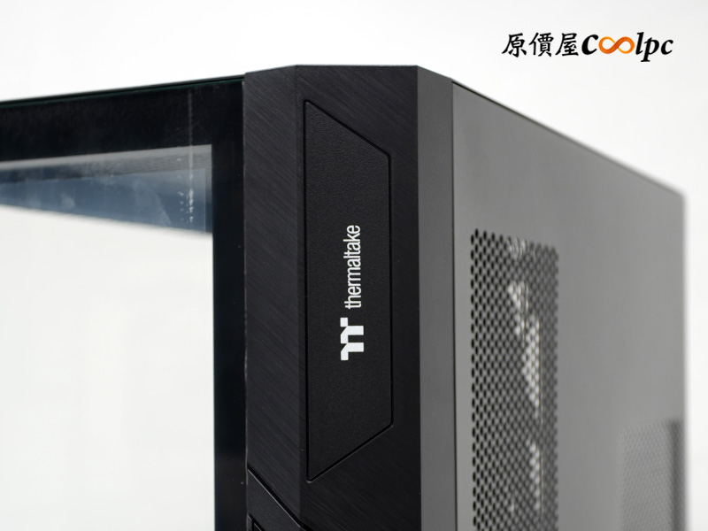 側邊強化玻璃採用方便的卡榫式設計,不用螺絲起子,直接從邊緣掰開就能輕鬆開啟;曜越還很貼心地在上方貼了一塊指示貼紙,看完直接撕掉就好,不用擔心影響美觀。