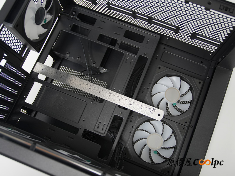 頂部空間最多能直上 3 顆 120mm 或 2 顆 140mm 風扇,想裝水冷也能直上 360mm 或 280mm 一體式水冷也完全沒問題。