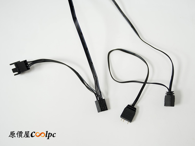 風扇是主流的 4-Pin PWM 供電與 3-Pin ARGB 規格,而且全部都預先做好了便利的串接設計,只是出廠時線材被綑得比較亂,上機前稍微理一下才會更美觀唷!