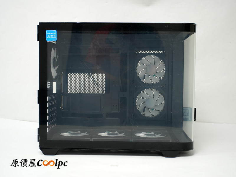 主機板側與底部預先安裝五顆 120mm Infinity ARGB 反向 PWM 風扇,後方則配備一顆 120mm Infinity ARGB PWM 風扇;也就是說,只要你再補上一組 360mm 水冷就滿配啦!