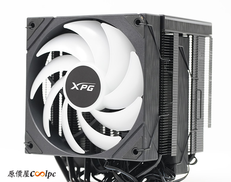 XPG MAESTRO PLUS 62DA本體登場,體積120 x 126 x 160mm(L x W x H),重量1.4KG,本身是全黑化的設計,由雙塔雙風扇組成,內部有大面積散熱鰭片,並用六支導熱管貫穿其中,再透過偏移設計減少對RAM的干涉。頂部還特別加入數位顯示面板,並輔以ARGB燈效點綴。